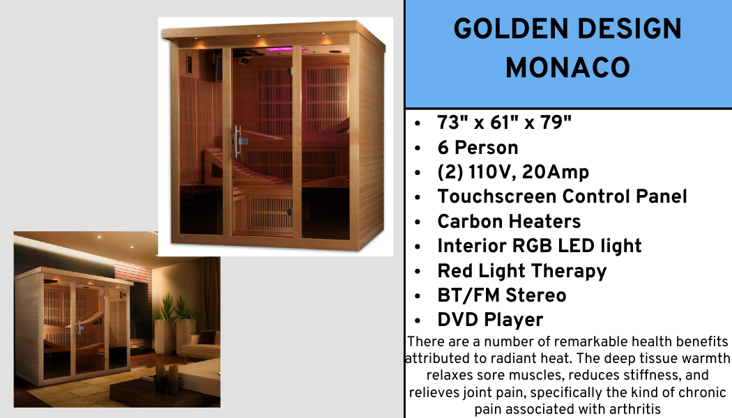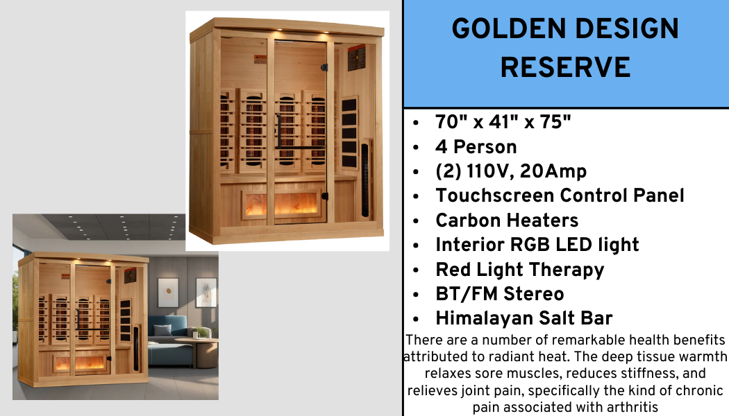 Golden Designs Family of Infrared Saunas is completely safe and produces the same far infrared heat generated by the sun.