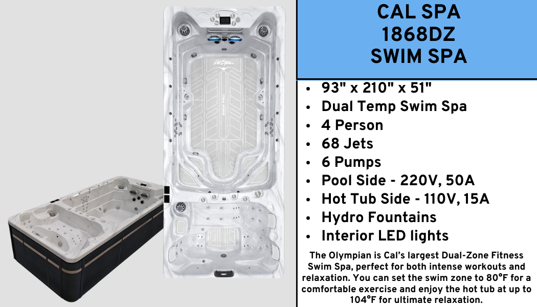 Swim Spas are a great alternative to a swimming pool! Some of our swim spas are deeper than most above ground swimming pools! All of our swim spas have jetted hydrotherapy seats - so after a long strenuous workout, pop over into the hot tub seats and relax!